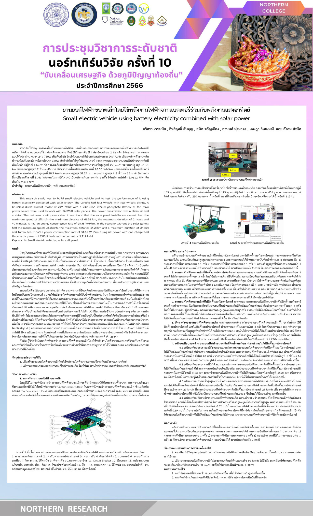 ยานยนต์ไฟฟ้าขนาดเล็กโดยใช้พลังงานไฟฟ้าจากแบตเตอรี่ร่วมกับพลังงานแสงอาทิตย์